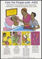 A woman and child caring for a man sick with AIDS in bed with further illustrations demonstrating how to protect from and prevent AIDS; an advertisement for AIDS education from the Ministry of Health AIDS Control Programme. Colour lithograph, ca. 1995 (?).