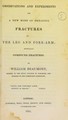 Observations and experiments on a new mode of treating fractures of the leg and fore-arm : especially compound fractures / by William Beaumont.