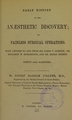 Early history of the anaesthetic discovery, or, Painless surgical operations : with letters to and from Sir James Y. Simpson, Dr. Benjamin W. Richardson, and Dr. Henry Bennet : Boston versus Hartford / by Robert Hanham Collyer.