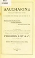Saccharine, benzoyl sulphonic-imide, Dr. Fahlberg's new sweetening agent made from coal-tar ... : a compilation of the results obtained since its introduction, by the scientific researches of learned men and through the practical experience of experts / by Adolph List, a partner of the firm of Fahlberg, List & Co., saccharine works. English ed.
