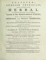 English physician; and complete herbal. To which are now first added, upwards of one hundred additional herbs, with a display of their medicinal and occult properties, physically applied to the cure of all disorders incident to mankind ... forming a complete family dispensatory. Illustrated with notes and observations, critical and explanatory / ... By E. Sibly.
