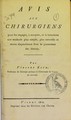 Avis aux chirurgiens pour les engager, à accepter, et à introduire une méthode plus simple, plus naturelle et moins dispendieuse dans le pansement des blessés / par Vincent Kern.