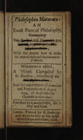 Philosophia maturata: an exact piece of philosophy, containing the practick and operative part thereof in gaining the Philosophers stone ... Whereunto is added, a work compiled by St. Dunstan concerning the Philosophers stone, and the experiments of Rumelius, and preparations of Angelo Sala ... / [Lancelot Coelson].