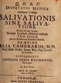 Q. D. B. V. Disputatio medica exhibens casum salivationis sine salivatione. Divina favente gratia, gratiosae Facultatis Medicae consensu, pro loco placido eruditorum examini submissa; / praeside Elia Camerario, M.D. ... Respondente Georgio Tobia Weismanno, Nürtingens. In aula nova. Ad d. 18. Decembr. Anno M DCC XI.