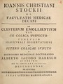 De clysterum emollientium usu in colica suspecto, prolusio inaugurali dissertationi de ictero colicae iuncto ... praemissa / [Johann Christian Stock].