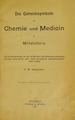 Die Geheimsymbole der Chemie und Medicin des Mittelalters : eine Zusammenstellung der von den Mystikern und Alchymisten gebrauchten geheimen Zeichenschrift, nebst einem kurzgefassten geheimwissenschaftlichen Lexikon / von G.W. Gessmann.
