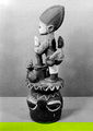 M0012649: Yoruba head mask surmounted by a female figure and several child figures, Southern Nigeria