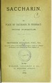 Saccharin : the place of saccharin in pharmacy, with formulae / by Professor Attfield.