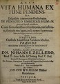 Vita humana ex fune pendens : h. e., Disquisitio anatomico-physiologica de funiculo umbilicali human. eumque ligandi necessitate, cum famosae istius objectionis, cur in brutis, funiculo non ligato, nulla tamen superveniat haemorrhagia? tentata resolutione ... / author Johann Wilhelm Müller.