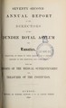 Seventy-second annual report of the directors of the Dundee Royal Asylum for Lunatics : submitted, in terms of their charter, to a general meeting of the directors, 20th June, 1892 with the reports of the medical superintendent and treasurer of the institution.