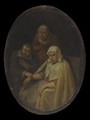 A man taking a woman's pulse. Oil painting by Egbert van Heemskerck.