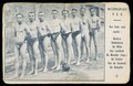 A male waterpolo team pose in a line. Colour process print, 193-.