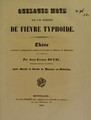 Quelques mots sur une épidémie de fièvre typhoïde : thèse présentée et publiquement soutenue à la Faculté de médecine de Montpellier, le 1er mars 1841 / par Ange-Eugène Duval.