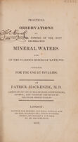 Practical observations on the medical powers of the most celebrated mineral waters. And of the various modes of bathing. Intended for the use of invalids / [Patrick Mackenzie].