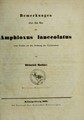 Bemerkungen über den Bau des Amphioxus lanceolatus : eines Fisches aus der Ordnung der Cyclostomen / von Heinrich Rathke.