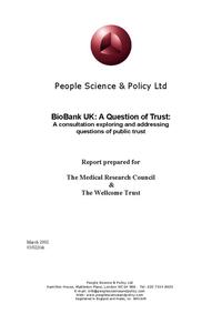 Biobank a question of trust : a consultation exploring and addressing questions of public trust / report prepared for the Medical Research Council & the Wellcome Trust.