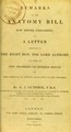 Remarks on the Anatomy Bill now before Parliament : in a letter addressed to the Right Hon. the Lord Althorp, and given to the members of either House on their personal or written application to the publisher / by G.J. Guthrie.