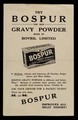 Try Bospur : the new gravy powder / made by Bovril Limited.