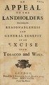 An appeal to the landholders concerning the reasonableness and general benefit of an excise upon tobacco and wine.