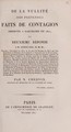 De la nullité des prétendus faits de contagion observés à Barcelone en 1821 : ou deuxième réponse à M. Audouard ... envoyé à Barcelone en 1821 ... par Son Excellence le Ministre de la Guerre, à l'occasion de la fièvre jaune ... / par N. Chervin.