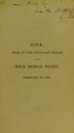 Ode read at the centenary dinner of the Royal Medical Society, February 17th, 1837.