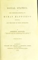 Social statics, or, the conditions essential to human happiness specified, and the first of them developed / by Herbert Spencer.