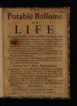 The potable balsome of life : being a collection of the choicest preservatives that are extant within the three natural families of minerals, vegetables and animals, reduced into such essences and tinctures by the scientifick art of chymie ... by which the bodies which are in health may be preserved ... / published by P. Bellon.