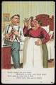 A young man called Oscar is asked by his mother whether he wears hairpins (regarded by her as effeminate). Colour process print, ca. 1907.