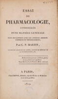 Essai de pharmacologie, considérée ... dans ses rapports avec les sciences physico-chimiques et physiologiques / [C.P. Martin].
