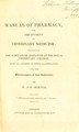A manual of pharmacy, for the student of veterinary medicine ; containing the substances employed at the Royal Veterinary College, with an attempt at their classification, and the pharmacopoeia of that institution / [William John Thomas Morton].