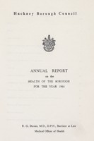 - [Report of the Medical Officer of Health for Hackney].Hackney (London, England). Metropolitan Borough.Date: [1964]