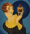 • A woman holding a bottle of Bubisan hair lotion. Colour lithograph after Leonhard Fries, ca. 1930.