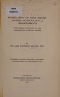 Correlation of some psychological and educational measurements : with special attention to the measurement of mental ability / by William Anderson McCall.