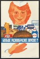 A shop assistant in a food shop in the Soviet Union displaying an abundance of food to assuage fears about food shortages. Colour lithograph after A. Dobrov, 1982.