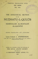 The zoological section of the Nuzhatu-l-qulūb of Ḥamdullāh al-Mustaufī al-Qazwīnī / edited, translated, and annotated by Lieut.-Colonel J. Stephenson.