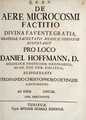 Q. D. B. V. De aere microcosmi factitio divina favente gratia, / gratiosae facultatis medicae consensu disputabit pro loco Daniel Hoffmann, D. ... respondente Ferdinando Christophoro Oetinger ... Ad diem [blank] Januar. Ann. MDCCXXXVII.