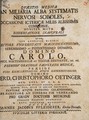 Quaestio medica an miliaria alba systematis nervosi soboles, occasione ictericae miliis albissimis conspersae : noviter mota dissertatione inaugurali ... / praeside ... Ferd. Christophoro Oetinger ... pro gradu doctoris medicinae publico examini submittit d. xxvi. septembr. MDCCLXVIII. auctor Joannes Jacobus Pfleiderer.