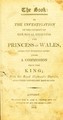 The book: or the investigation of the conduct of Her Royal Highness the Princess of Wales / being the evidence given under a Commission from the King; with Her Royal Highness's defence and other important documents.