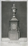 Bust of Abraham Cowley in Poets' Corner, Westminster Abbey, London. Etching with engraving by J. Cole.