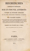 Recherches chimiques et médicales sur un nouvel antidote contre le sublimé corrosif et les autres préparations vénéneuses du mercure / Traduit de l'italien par G. Odier, avec des augmentations de l'auteur.