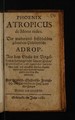 Phoenix atropicus de morte redux. Der wiederumb frischbelebte gebenedeyte philosophische Adrop, aus dem Grabe der Vergessenheit hervorgesucht, seinem Wesen, Eigenschafften, und eigentlicher Zubereitung nach ... aus arabisch- chaldaeisch- französisch- und lateinischer in hoch-teutscher Zungen beseelet und vorgestellet.