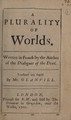 A plurality of worlds / Written in French by the author of the Dialogues of the dead [i.e. B. le Bovier de Fontenelle] ; Translated into English by Mr. Glanvill.