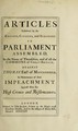 Articles exhibited by the knights, citizens, and burgesses in Parliament assembled ... against Thomas Earl of Macclesfield, in maintenance of their impeachment against him for high crimes and misdemeanours.