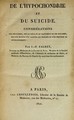 De l'hypochondrie et du suicide : Considerations sur les causes, sur le siege et le traitement de ces maladies, sur les moyens d'en arreter les progres et d'en prevenir le developpement.