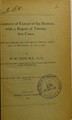 Treatment of cancer of the rectum, with a report of twenty-five cases : a paper read before the West Branch Medical Association, at Bellefonte, Pa., Jan. 12, 1897 / by W.W. Keen.