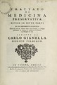 Trattato di medicina preservativa diviso in sette parti in cui brevemente si ragiona delle sei cose da' medici dette non naturali, e s'insegna parimente la maniera di conservare la sanità, e prolungare la vita / [Carlo Gianella].