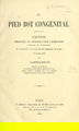 Du pied bot congénital : thèse présenteé au concours pour l'agrégation (section de chirurgie) et soutenue a la faculté de médecine de Paris le 31 mai 1869 / par Lannelongue.
