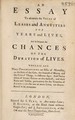 An essay to ascertain the value of leases and annuities for years and lives, and to estimate the chances of the duration of lives. Wherein are many observations on bills of mortality, etc / [Anon].