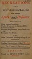 Recreations for gentlemen and ladies: being, ingenious sports and pastimes. Containing, many curious inventions: pleasant tricks on the cards and dice ... and other curiosities, affording variety of entertainment / Translated from the French of Mons. Ozanam.