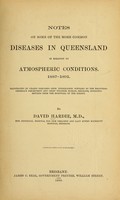 Notes on some of the more common diseases in Queensland in relation to atmospheric conditions, 1887-1891 : illustrated by charts prepared from information supplied by the Registrar-General's Department and Chief Weather Bureau, Brisbane, including returns from the hospitals of the colony / by David Hardie.